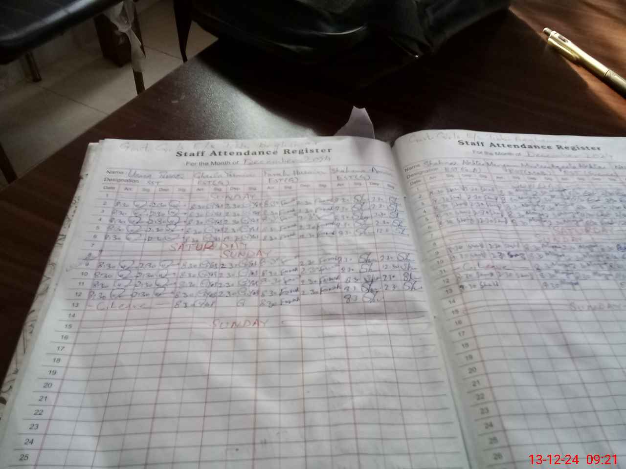| CNIC | Full Name | Designation | R/C | Absence During Last Calender Month |