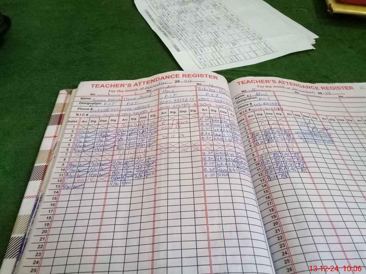 | CNIC | Full Name | Designation | R/C | Absence During Last Calender Month |