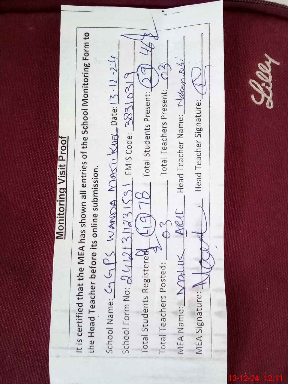 | EMIS Code: 38310319 | Name of School: GGPS WANDHA MASTI KHEL | |||