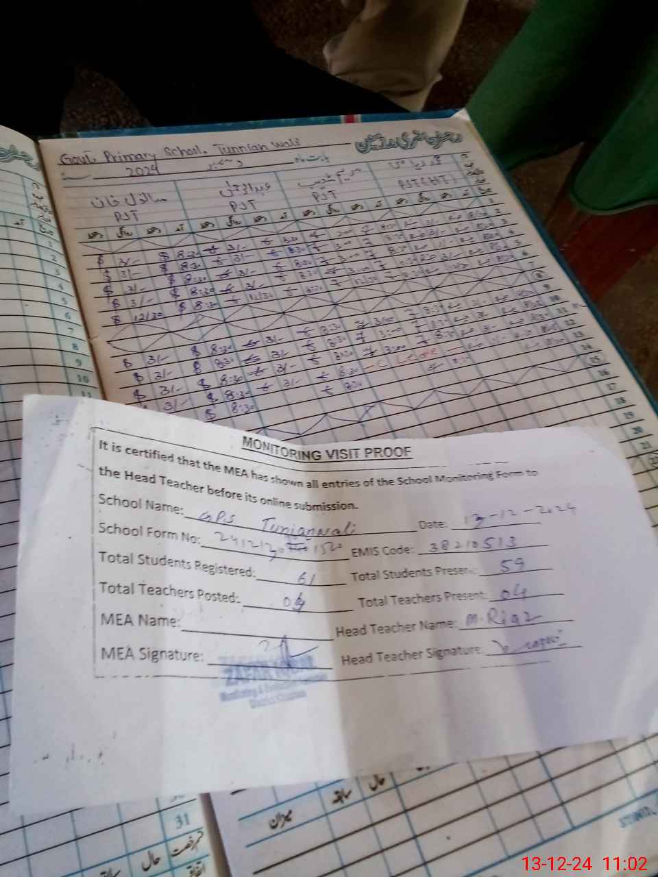 | EMIS Code: 38210513 | Name of School: GPS TUNNIAN WALI | |||