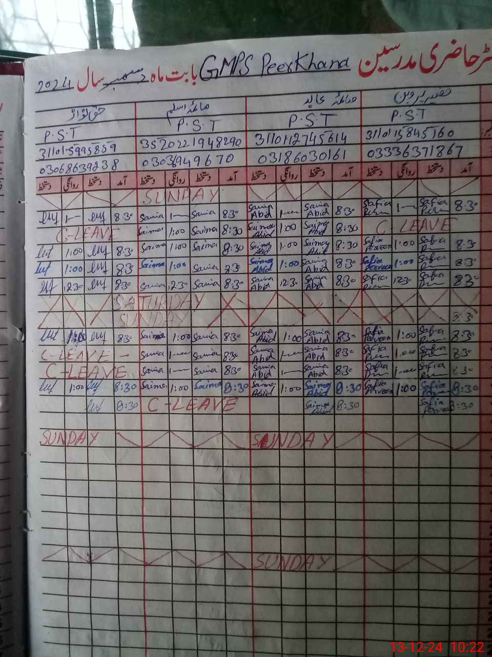 | Name: SA**** PE**** Designation: (School Headmaster's/Headmistress's) PST Phone/Cell Number: 03**** |