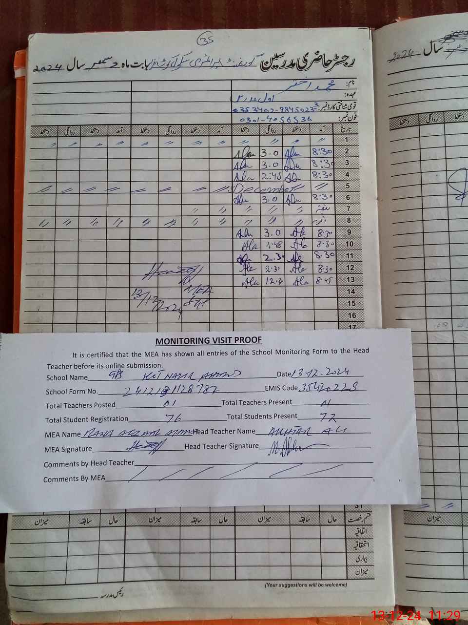 | EMIS Code: 35420228 | Name of School: GPS KOT NAZIR AHMAD | |||