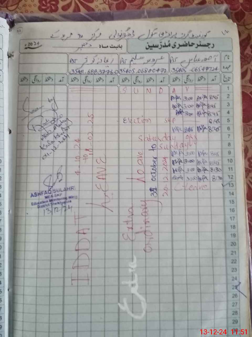 | Name: AS**** AB**** Designation: (School Headmaster's/Headmistress's) PST Phone/Cell Number: 03**** |