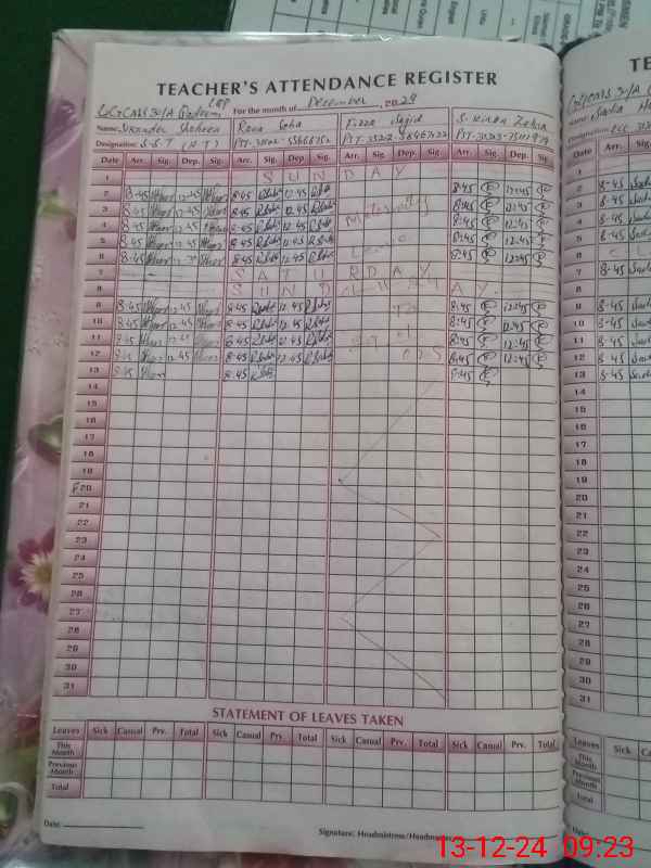 | Name: SI**** SH**** Designation: (School Headmaster's/Headmistress's) S.S.T.(GEN) Phone/Cell Number: 03**** |