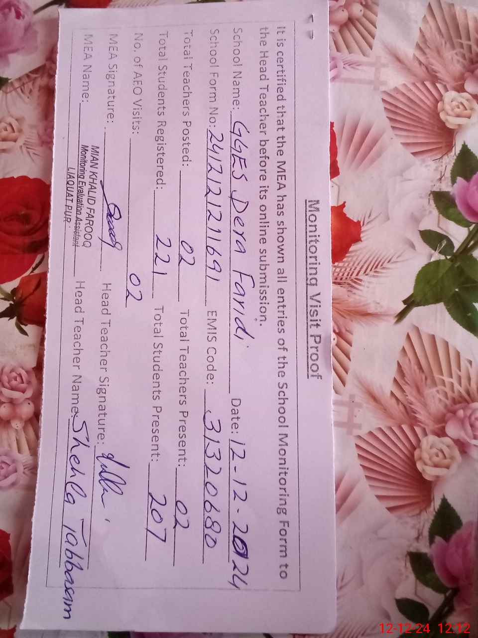 | EMIS Code: 31320680 | Name of School: GGES DERA FARIDI | |||