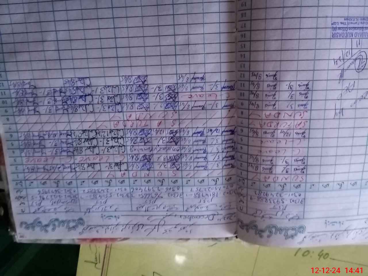 | CNIC | Full Name | Designation | R/C | Absence During Last Calender Month |