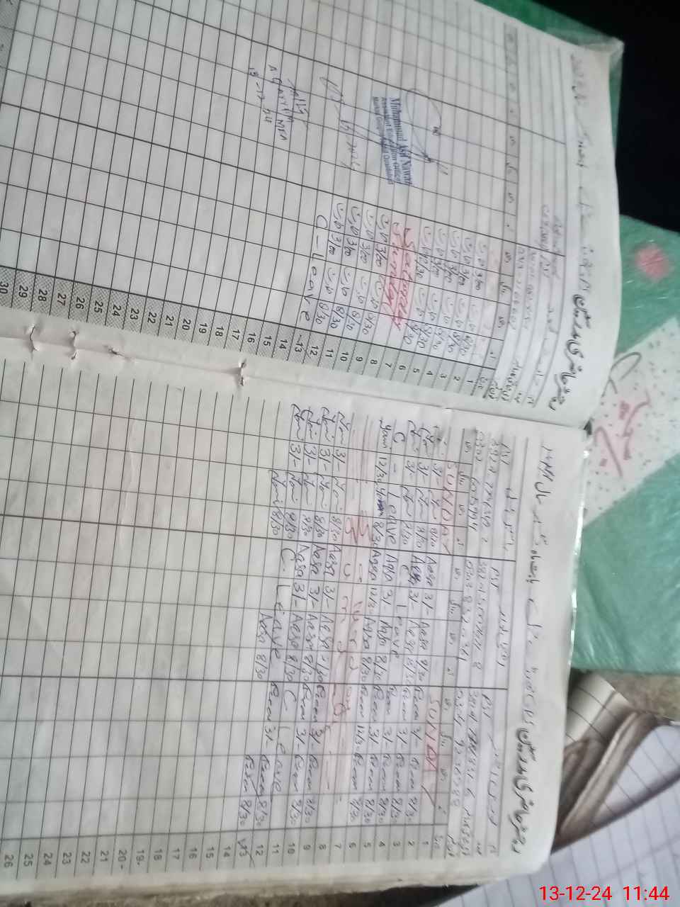 | CNIC | Full Name | Designation | R/C | Absence During Last Calender Month |
