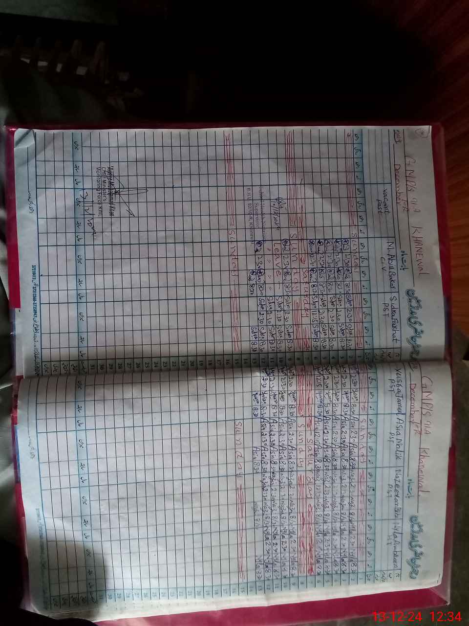 | CNIC | Full Name | Designation | R/C | Absence During Last Calender Month |