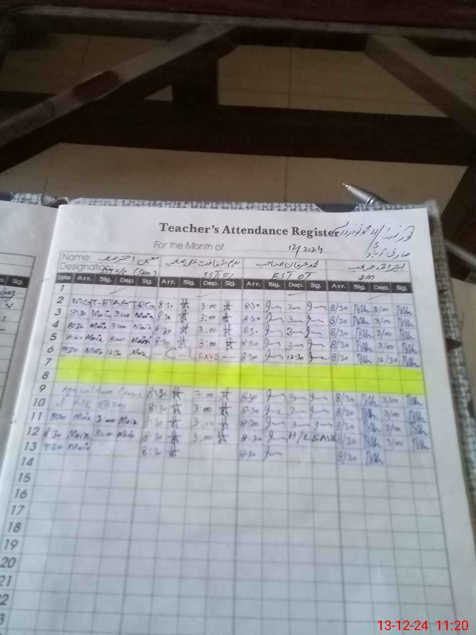 | CNIC | Full Name | Designation | R/C | Absence During Last Calender Month |