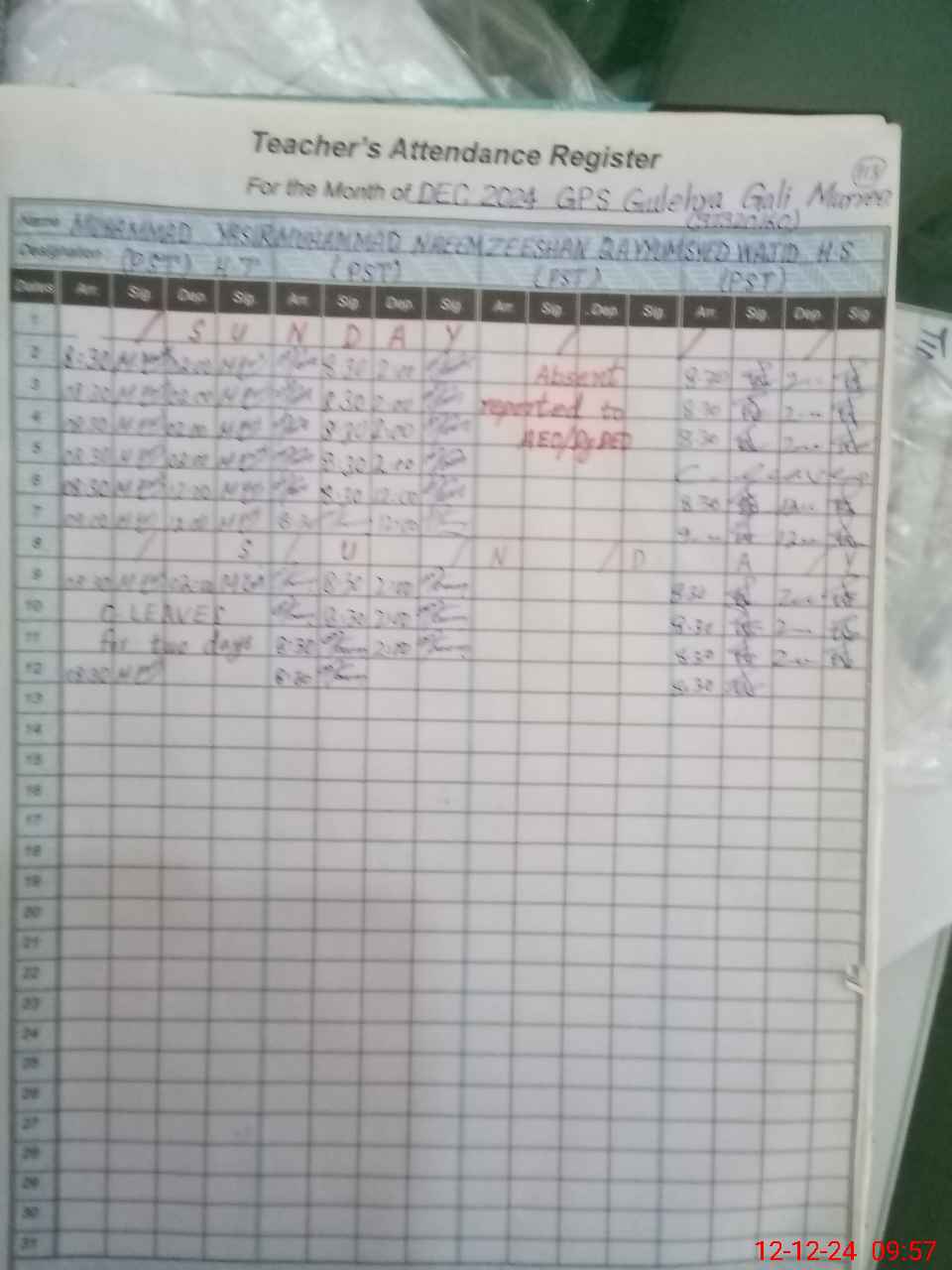 | 37**** | Ze**** Qa**** | 2 | 2 | 0 | 0 | 0 | 0 | 0 | 0 | 0 | 0 | 0 | Absent (Un-Authorized) |