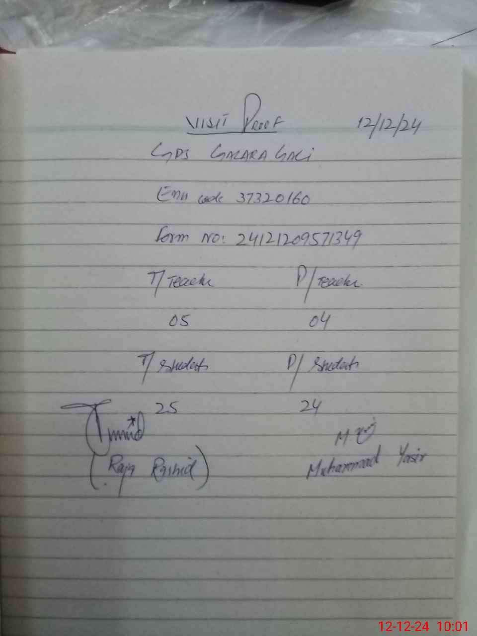 | Monitoring Date: 12-12-2024 | Start Time: 12-12-2024 09:27 AM | End Time: 12-12-2024 10:01 AM | Name of MEA: Ra**** Ra**** Al**** | |