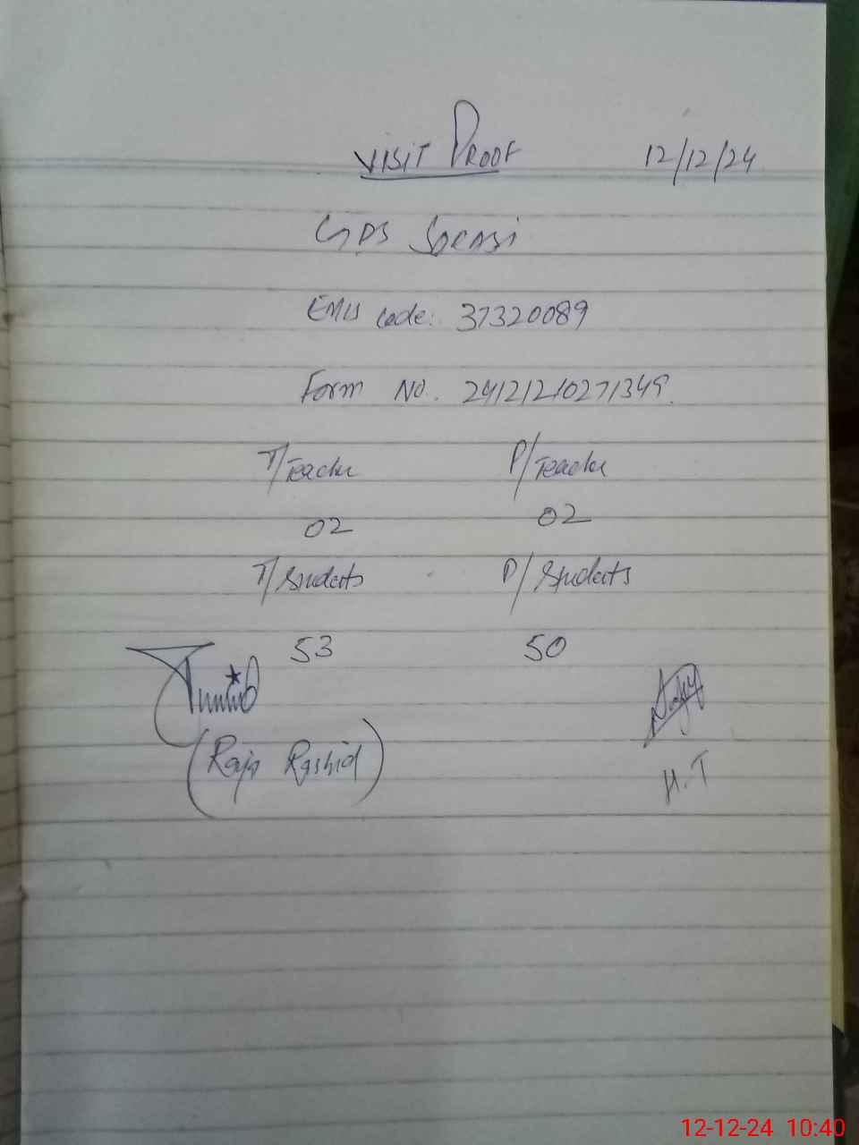 | Attendance Register | Head Teacher | MEA with School | Visit Proof |