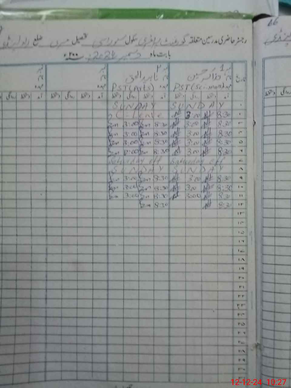 | CNIC | Full Name | Designation | R/C | Absence During Last Calender Month |