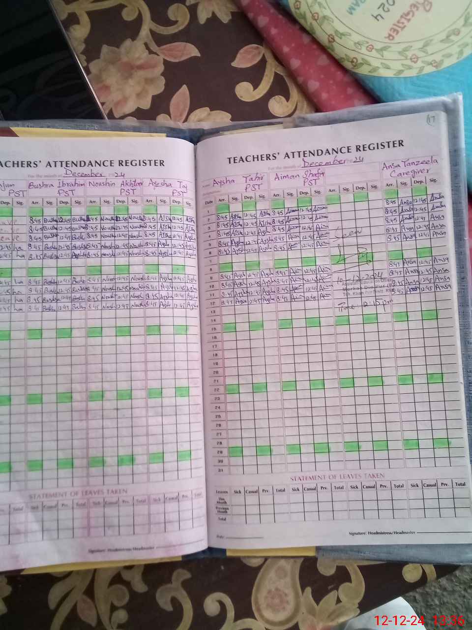 | Leave | Duty | Absent | Maternity | Medical | Ex- Pak |