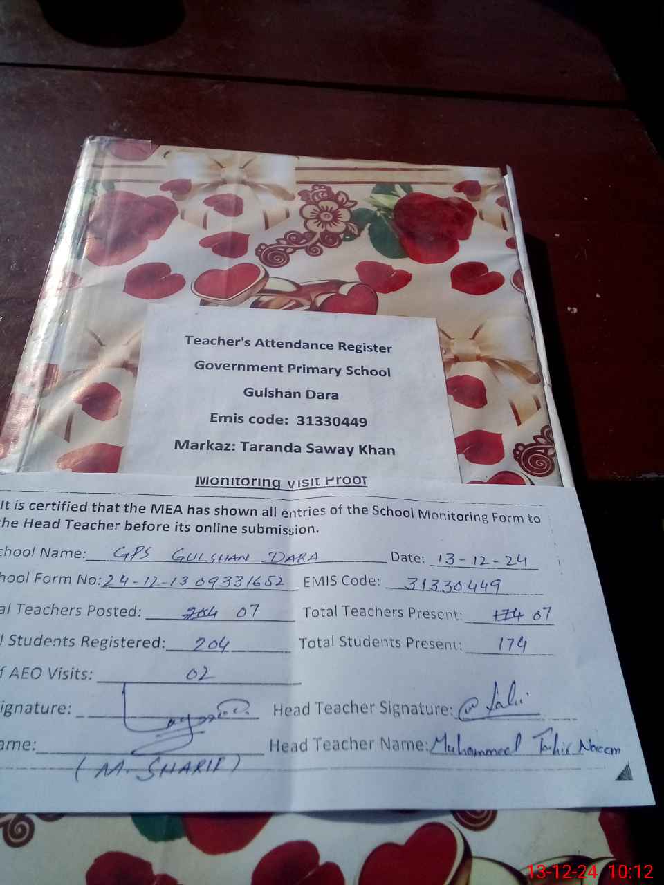 | EMIS Code: 31330449 | Name of School: GPS GULSHANDARA | |||
