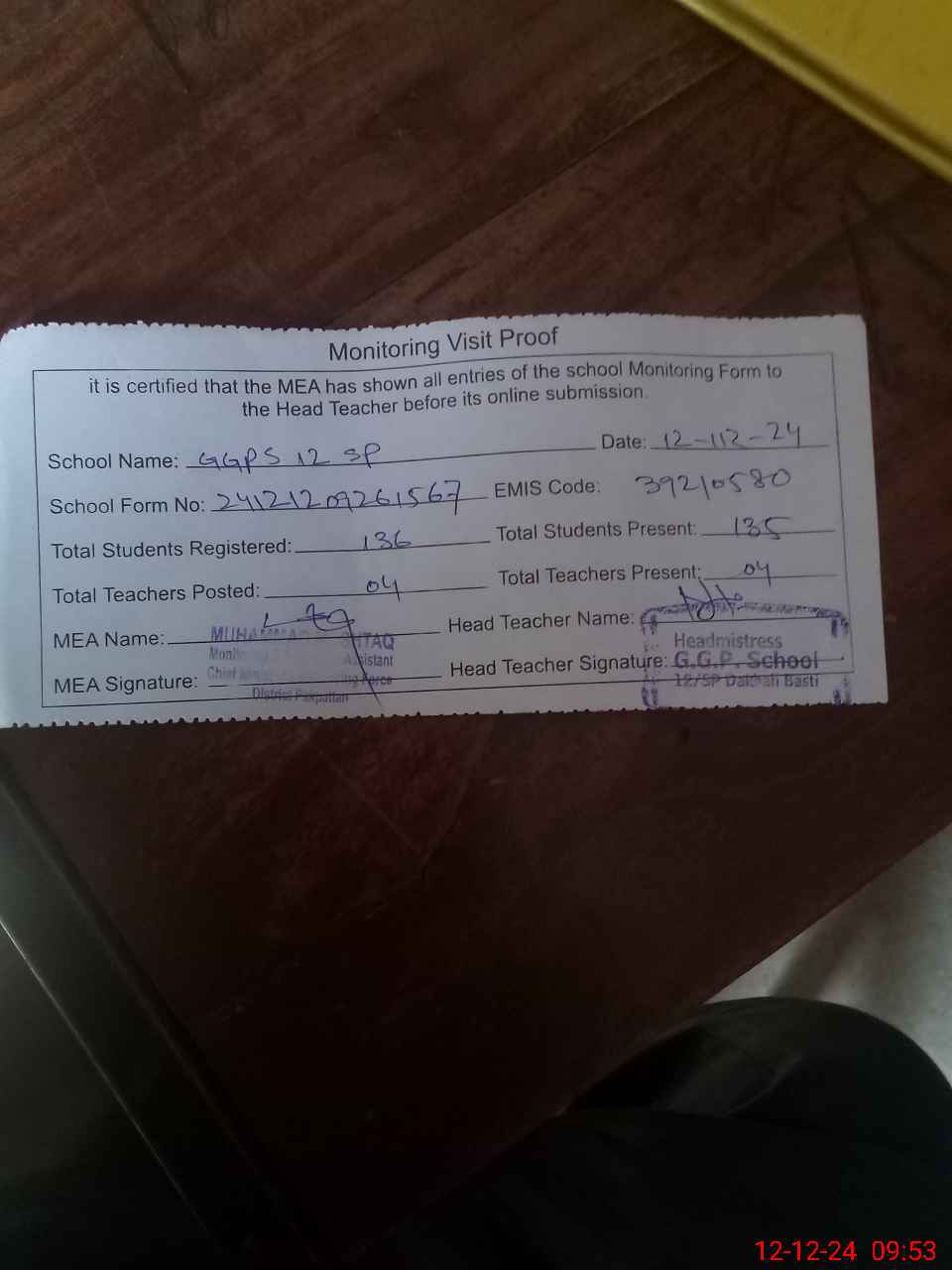 | EMIS Code: 39210580 | Name of School: GGPS 12 SP DAKHLI (BASTI KAMAL DIN) | |||