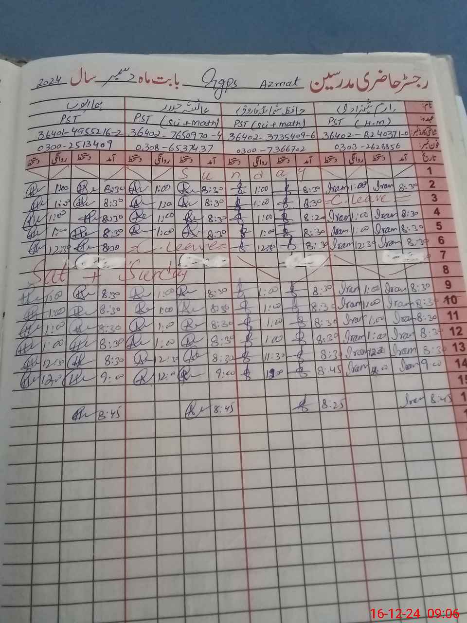 | Name: IR**** SH**** Designation: (School Headmaster's/Headmistress's) PST Phone/Cell Number: 03**** |