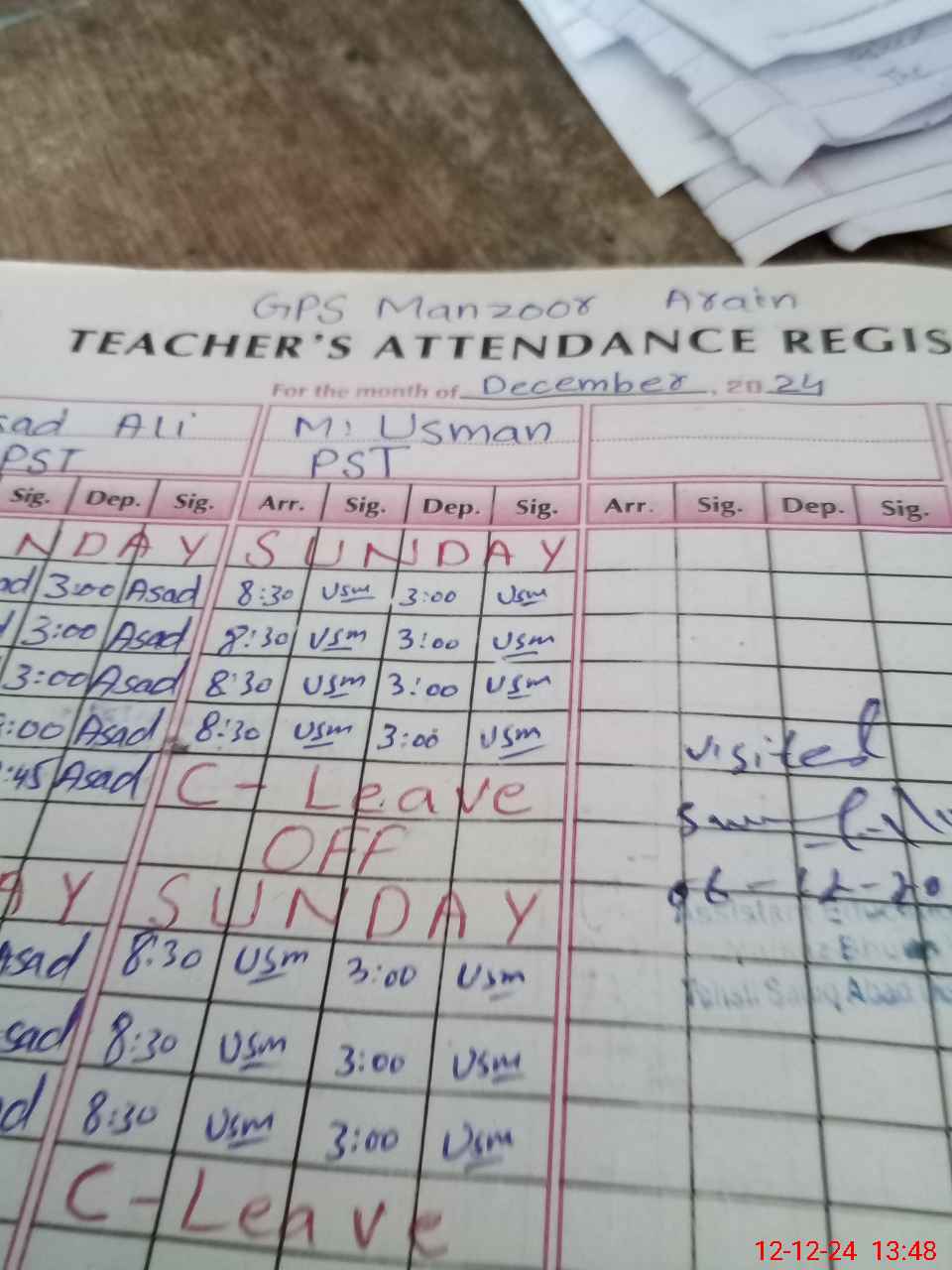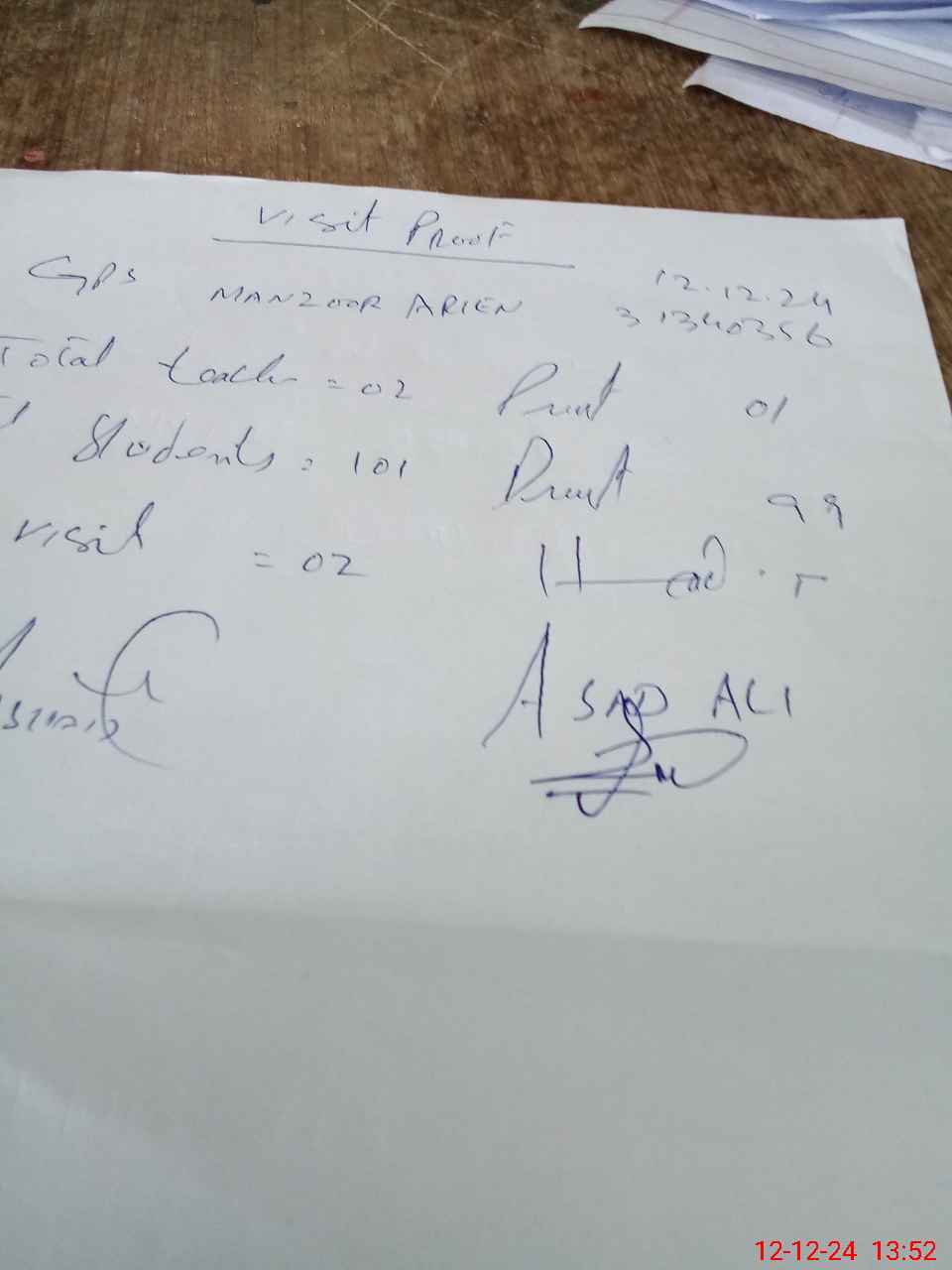 | Name: As**** Al**** Designation: (School Headmaster's/Headmistress's) PST Phone/Cell Number: 03**** |