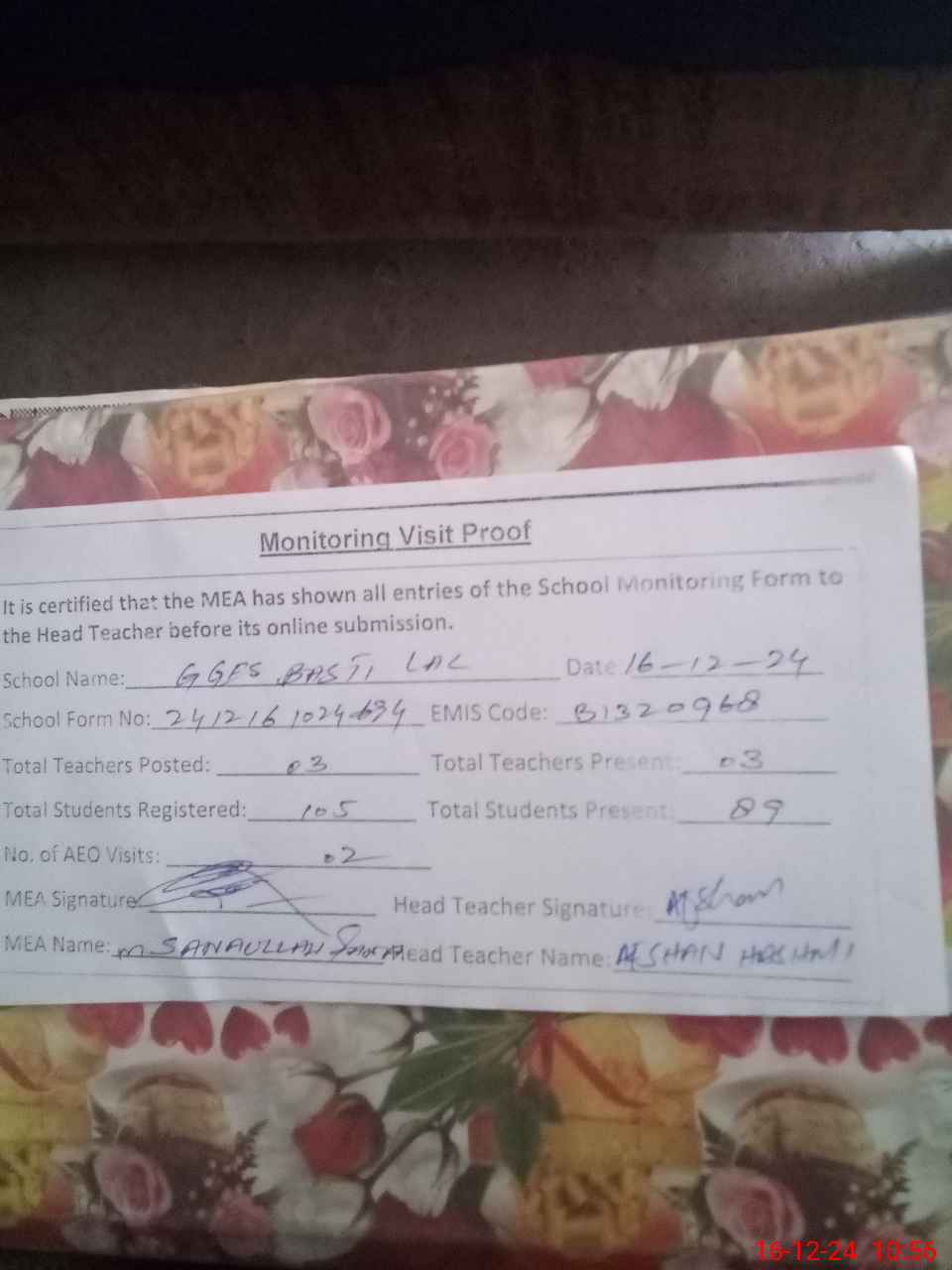 | EMIS Code: 31320968 | Name of School: GGES BASTI LAL | |||