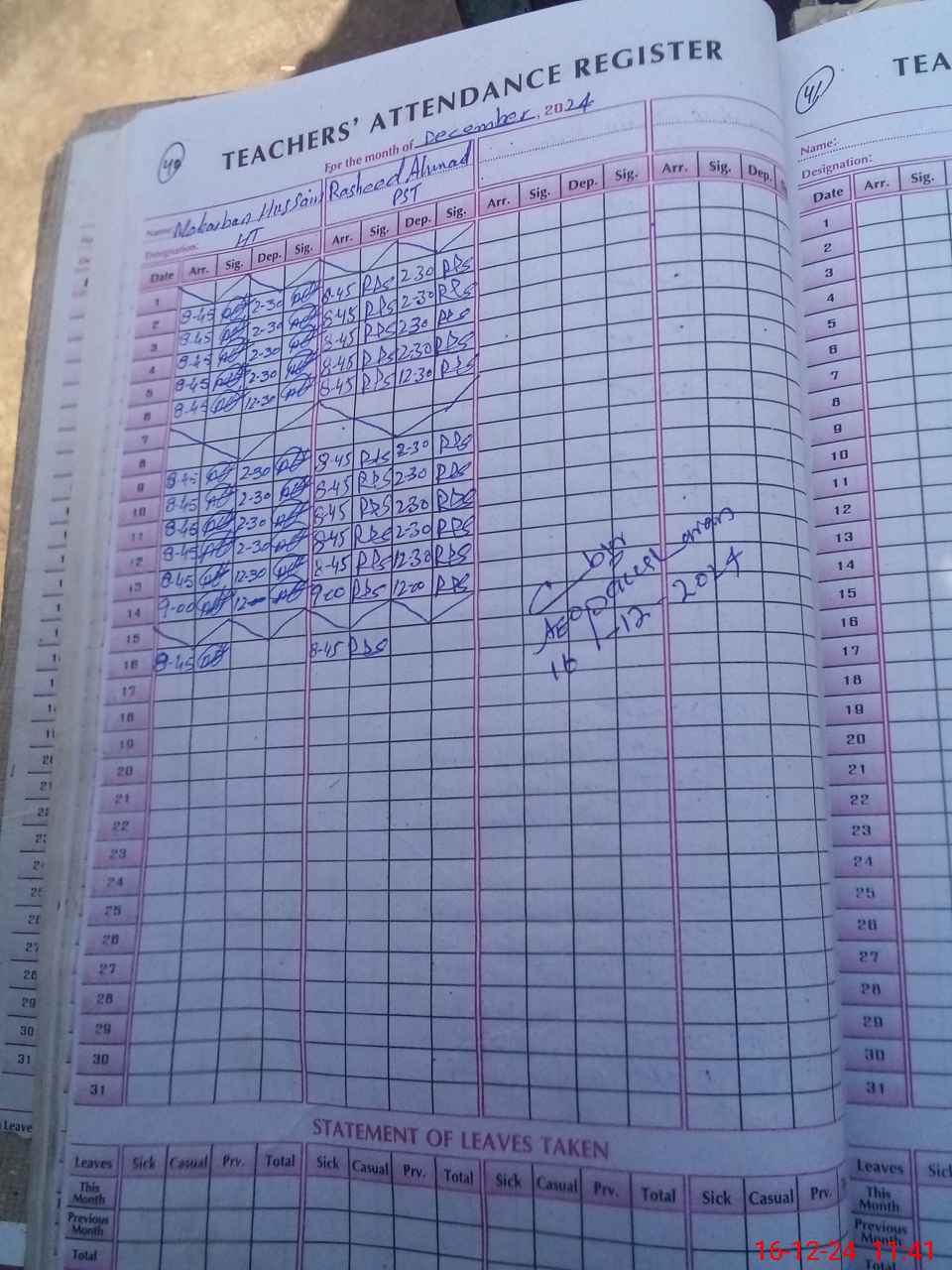 | Name: ME**** HU**** Designation: (School Headmaster's/Headmistress's) PST Phone/Cell Number: 03**** |