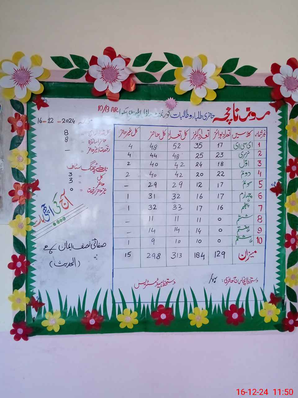 | Total Students Present | 48 | 0 | 44 | 40 | 40 | 29 | 31 | 32 | 11 | 14 | 9 | 298 | ||||