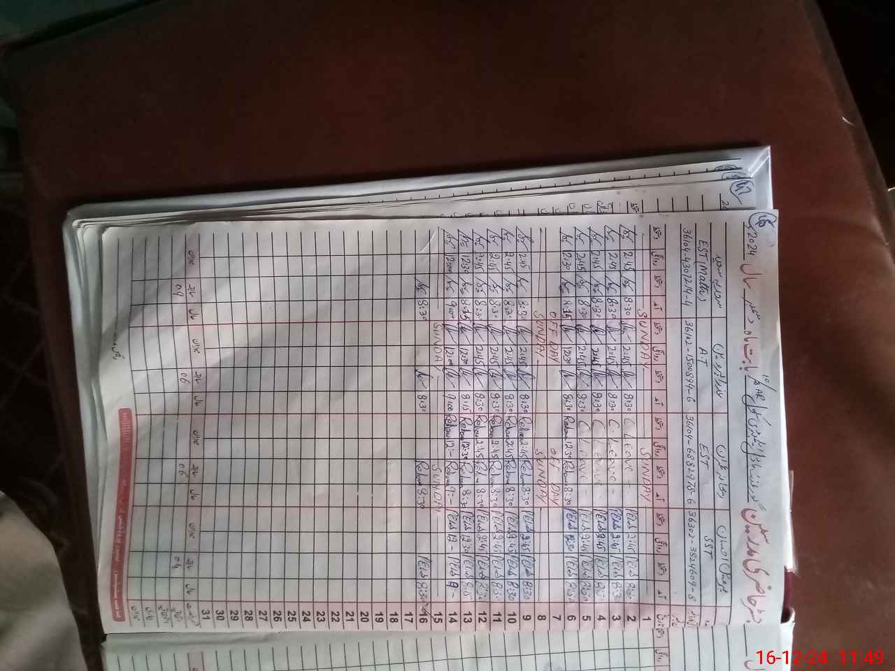 | CNIC | Full Name | Designation | R/C | Absence During Last Calender Month |