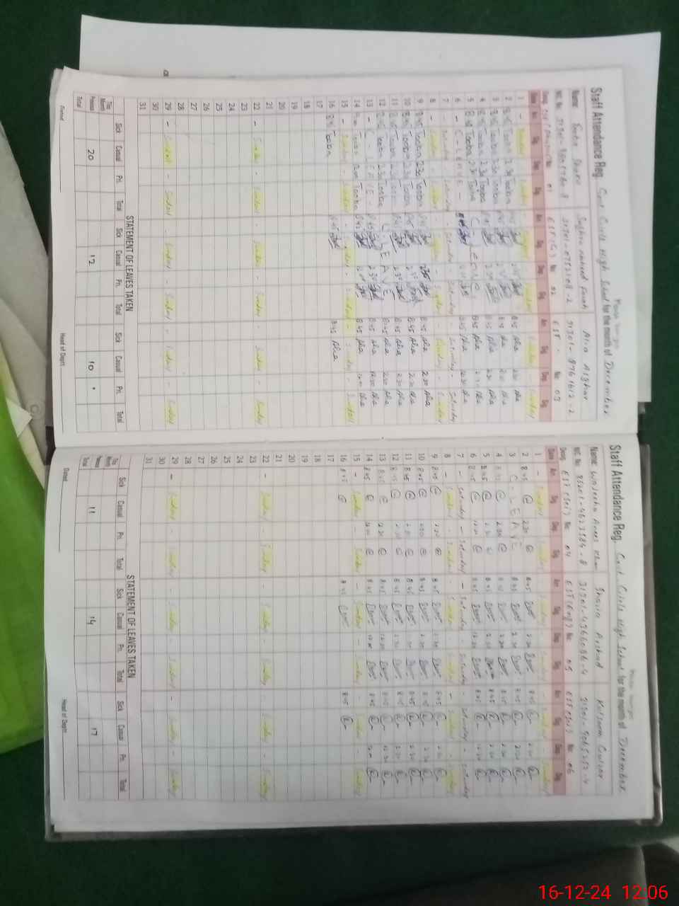 | CNIC | Full Name | Designation | R/C | Absence During Last Calender Month |