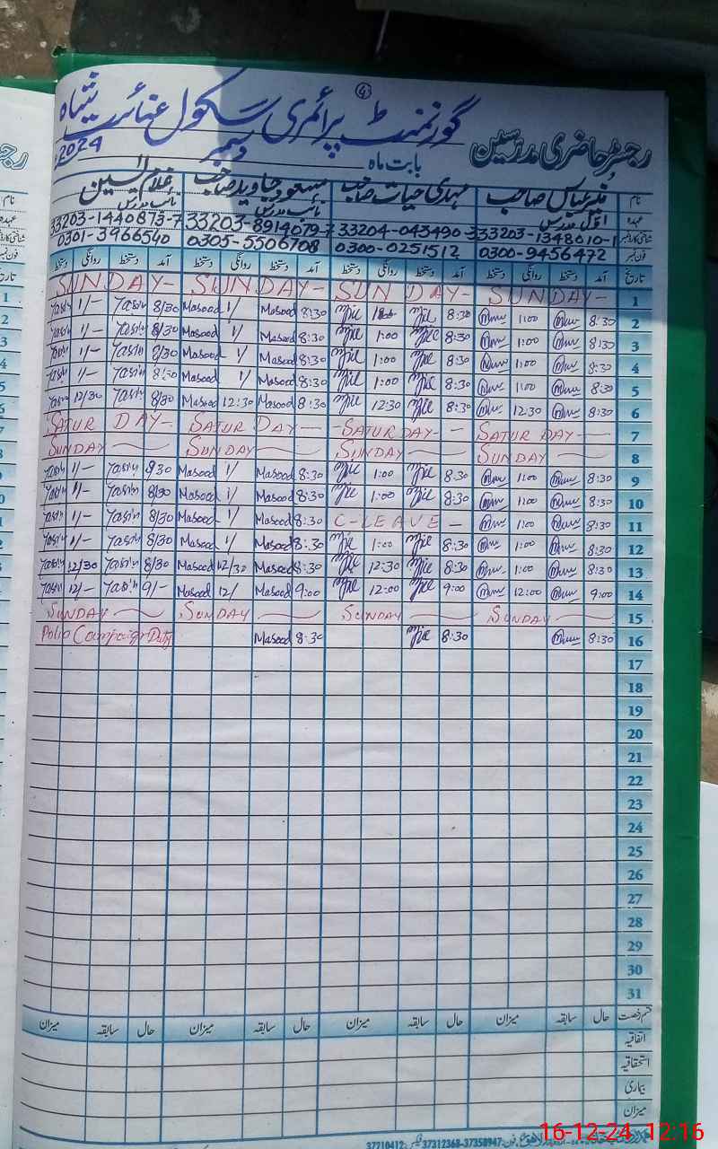 | Name: Mu**** Ab**** Designation: (School Headmaster's/Headmistress's) PST Phone/Cell Number: 03**** |