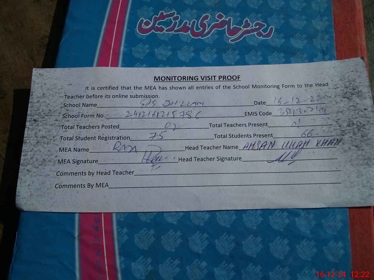 | EMIS Code: 35430344 | Name of School: GPS DHILLAM | |||