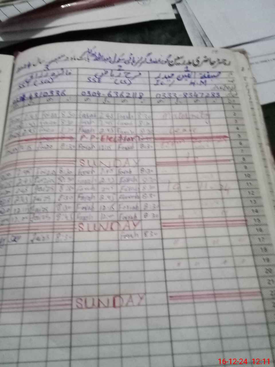 | CNIC | Full Name | Designation | R/C | Absence During Last Calender Month |