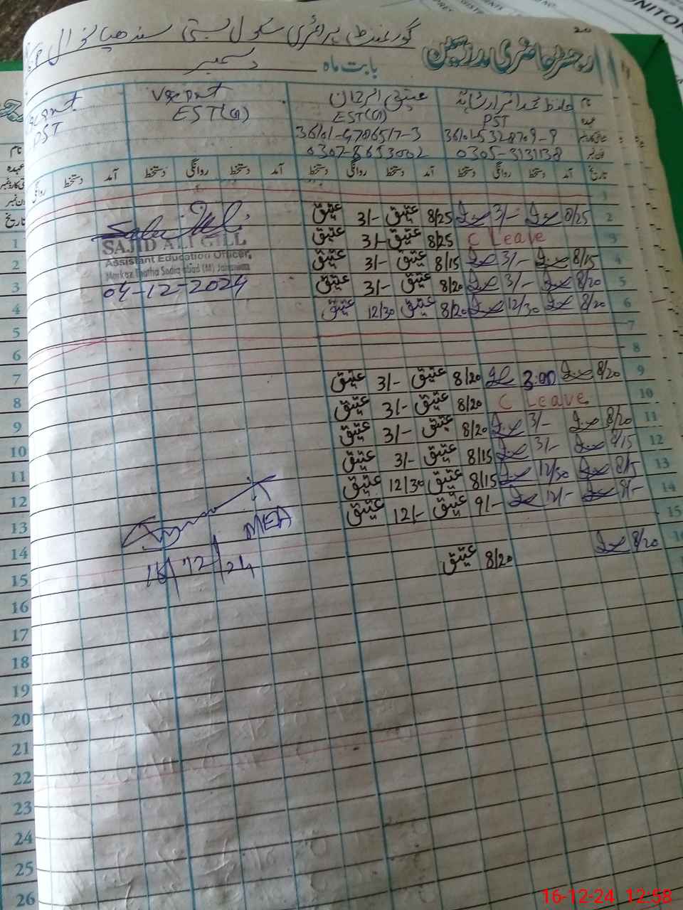 | Name: Ha**** Mu**** Iq**** Sh**** Designation: (School Headmaster's/Headmistress's) PST Phone/Cell Number: 03**** |