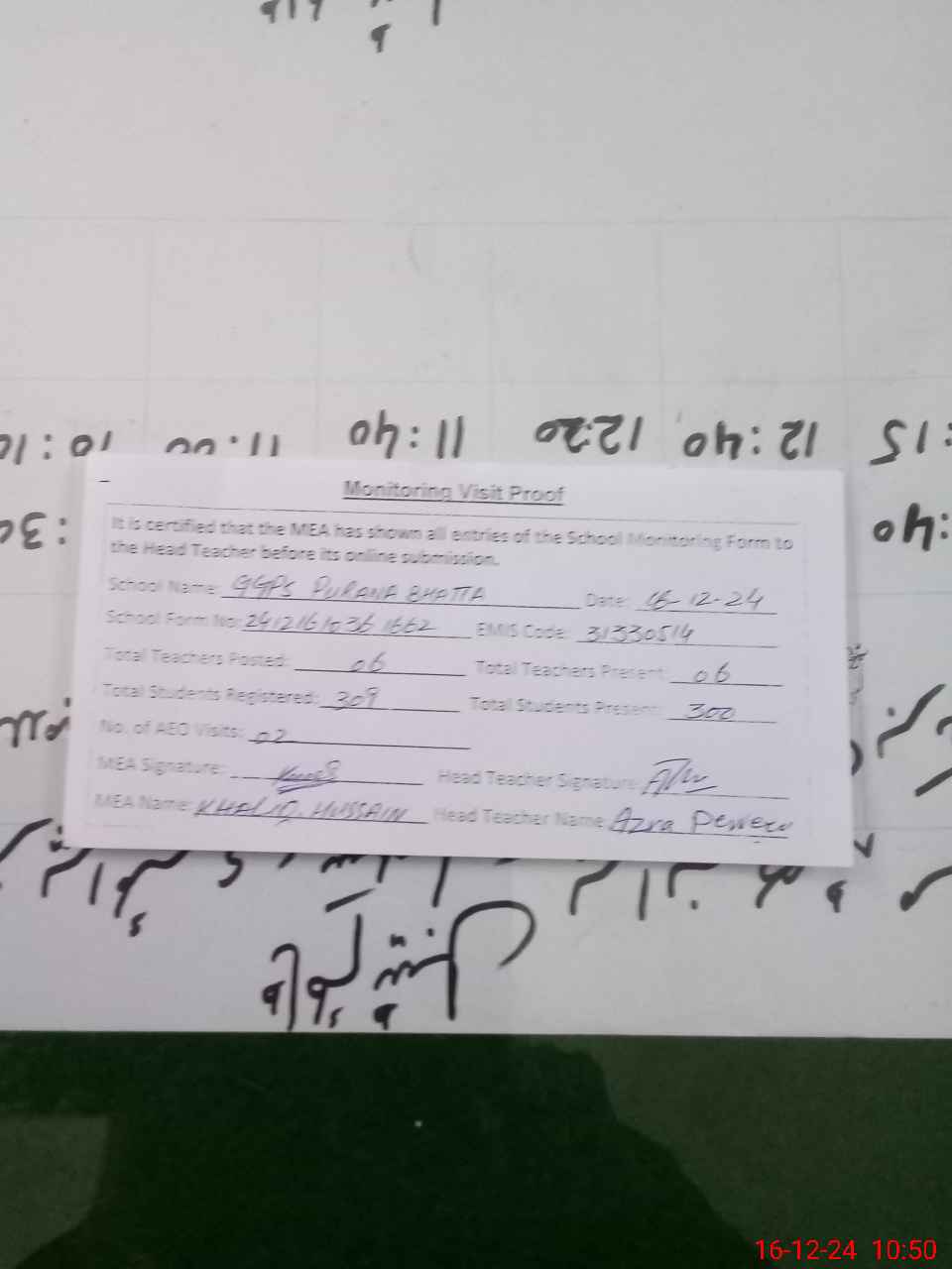 | Certified that this School was Inspected by the Undersigned MEA/DMO Today and the Information Stated Above is as Per Record. | |||||