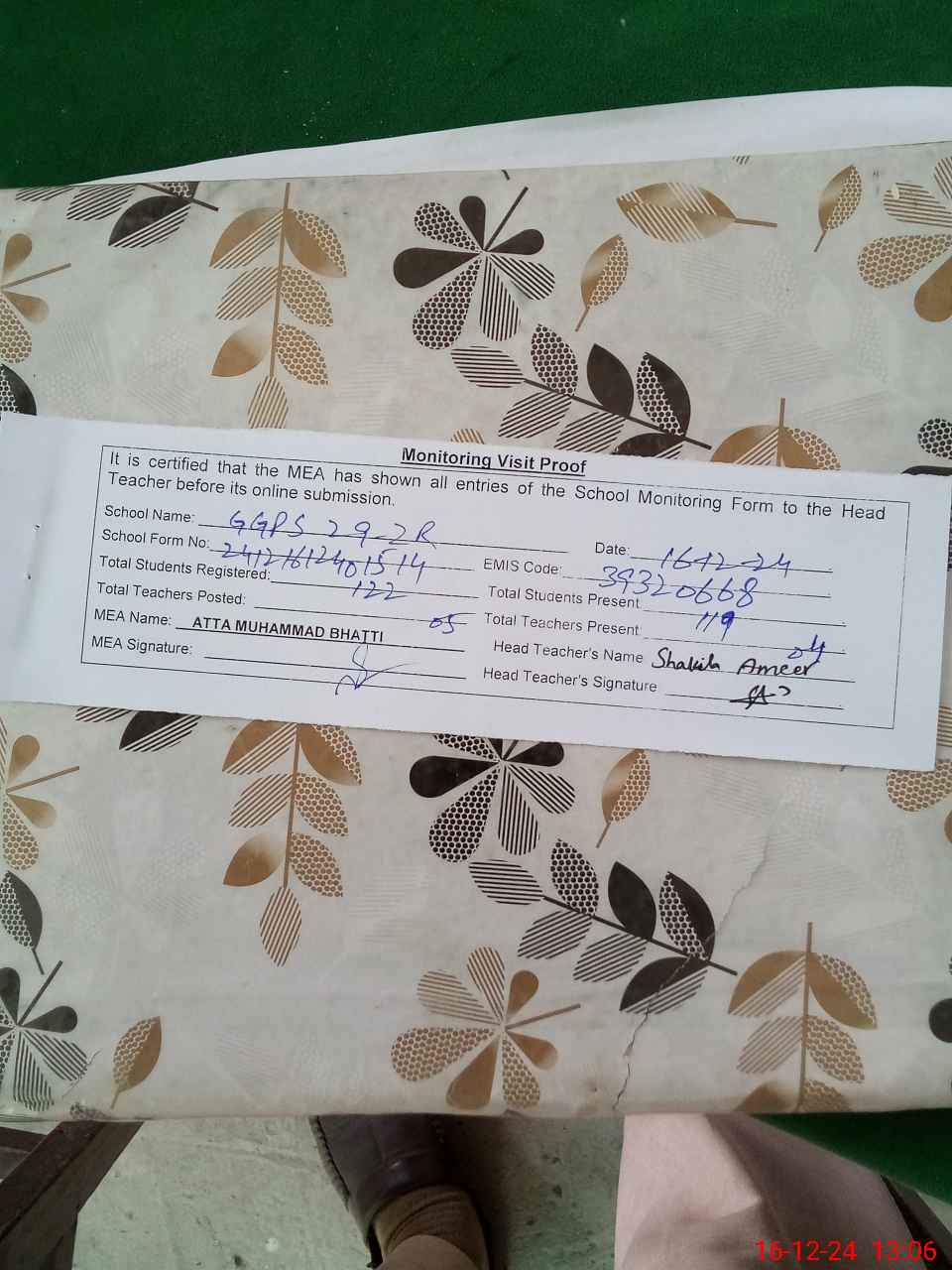 | Name: SH**** AM**** Designation: (School Headmaster's/Headmistress's) PST Phone/Cell Number: 03**** |