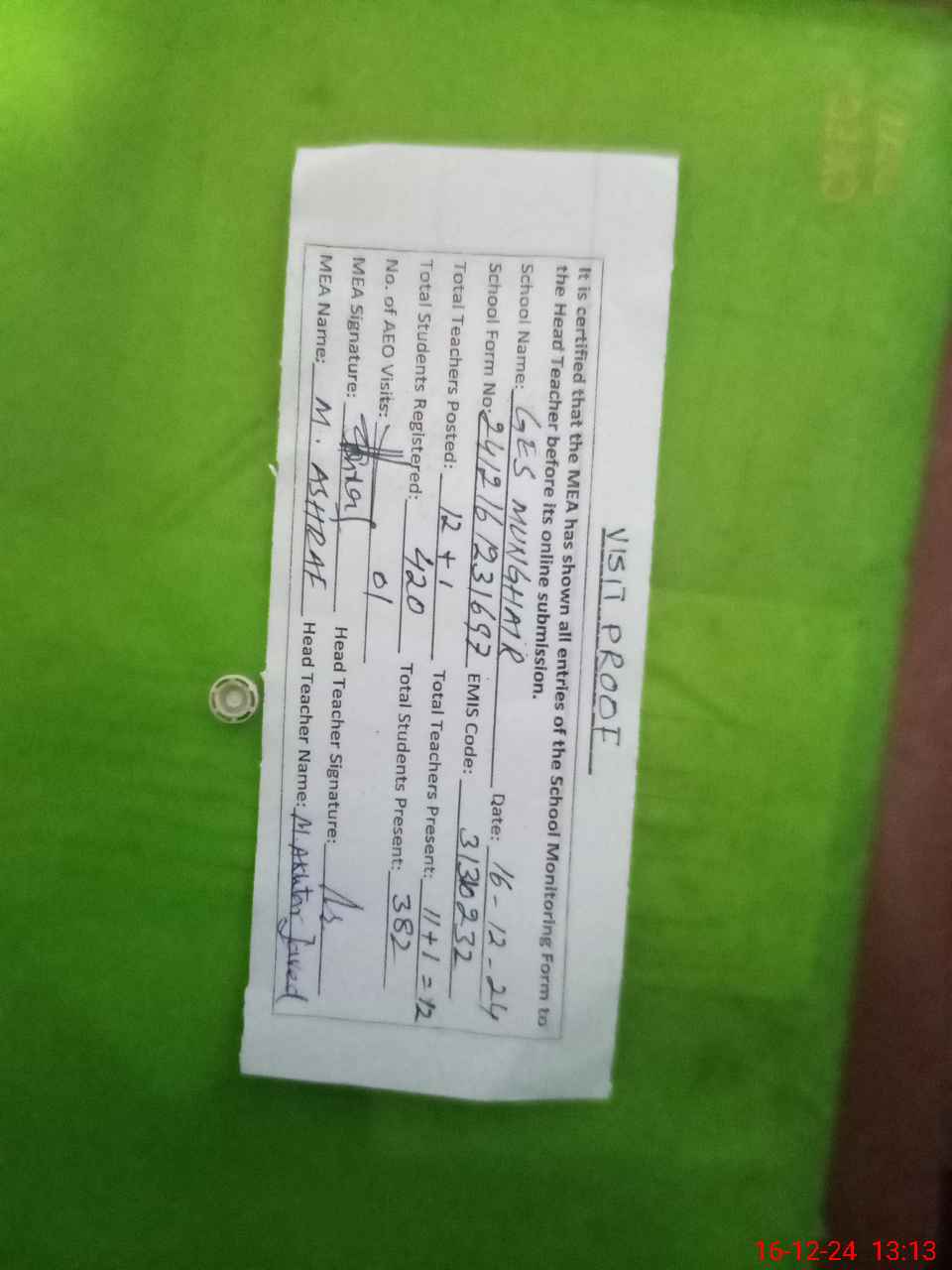 | EMIS Code: 31310232 | Name of School: GES MUNGHAIR | |||