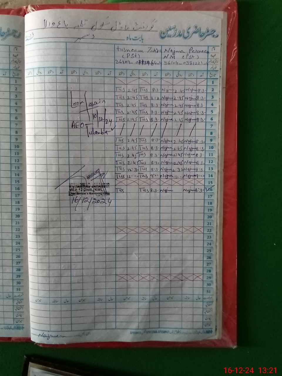 | Name: Na**** Pe**** Designation: (School Headmaster's/Headmistress's) PST Phone/Cell Number: 03**** |