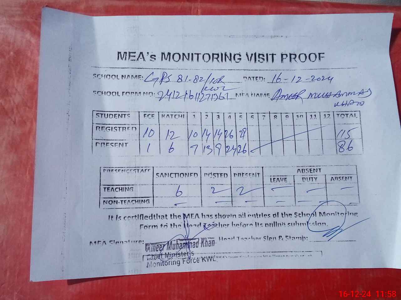 | EMIS Code: 36420205 | Name of School: GPS 81-82/10-R, KHANEWAL | |||