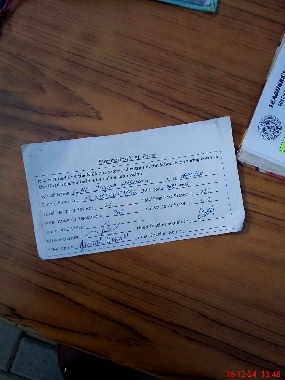 | EMIS Code: 31310015 | Name of School: GHS JAJJA ABBASIAN | |||