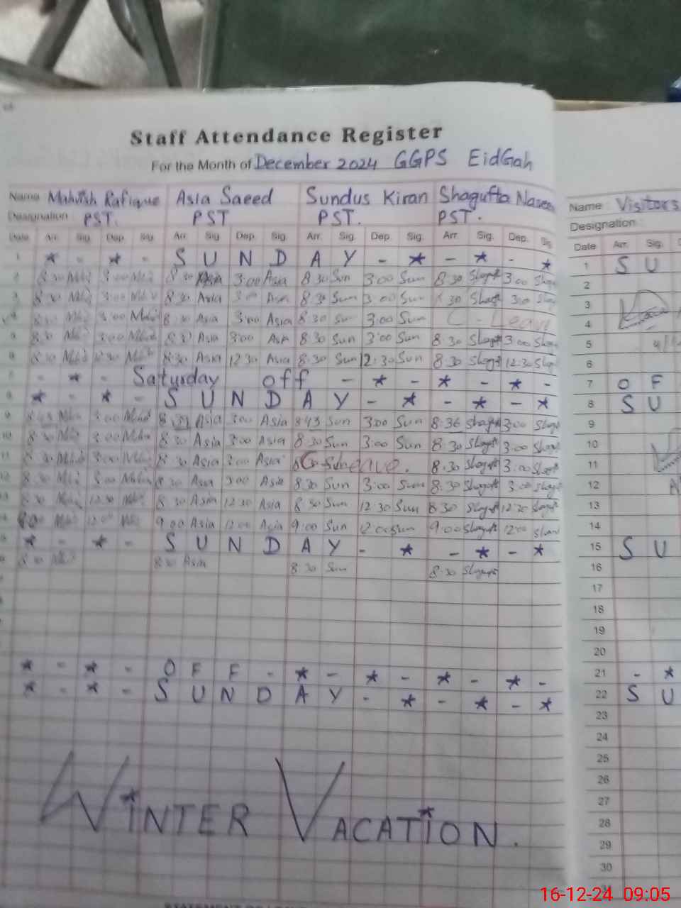 | Leave | Duty | Absent | Maternity | Medical | Ex- Pak |
