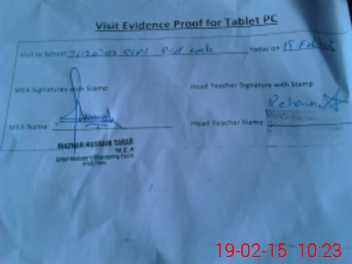 | Attendance Register | Head Teacher | MEA with School | Visit Proof |
