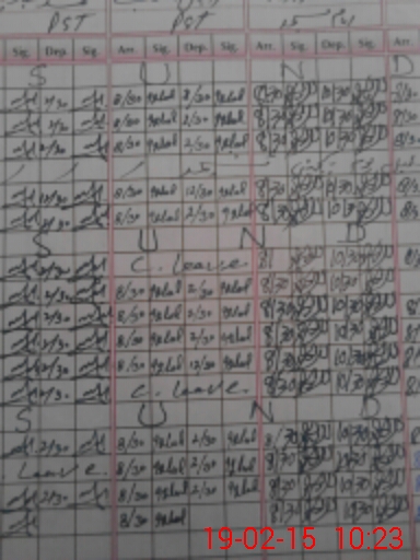 | CNIC | Full Name | Designation | R/C | Absence During Last Calender Month |