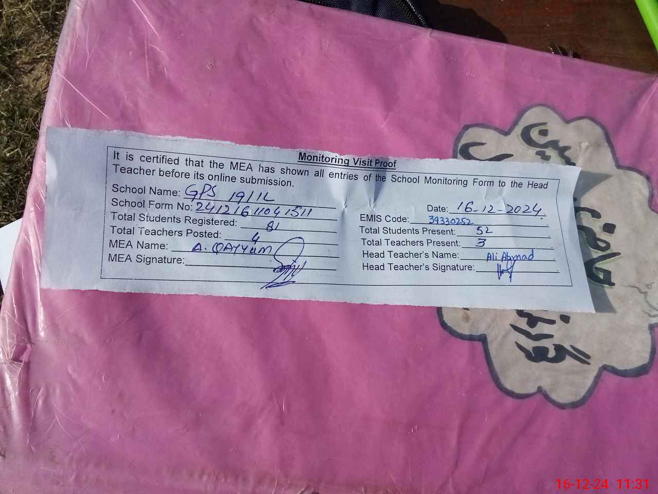 | EMIS Code: 39330252 | Name of School: GPS CHAK NO 19/1L | |||