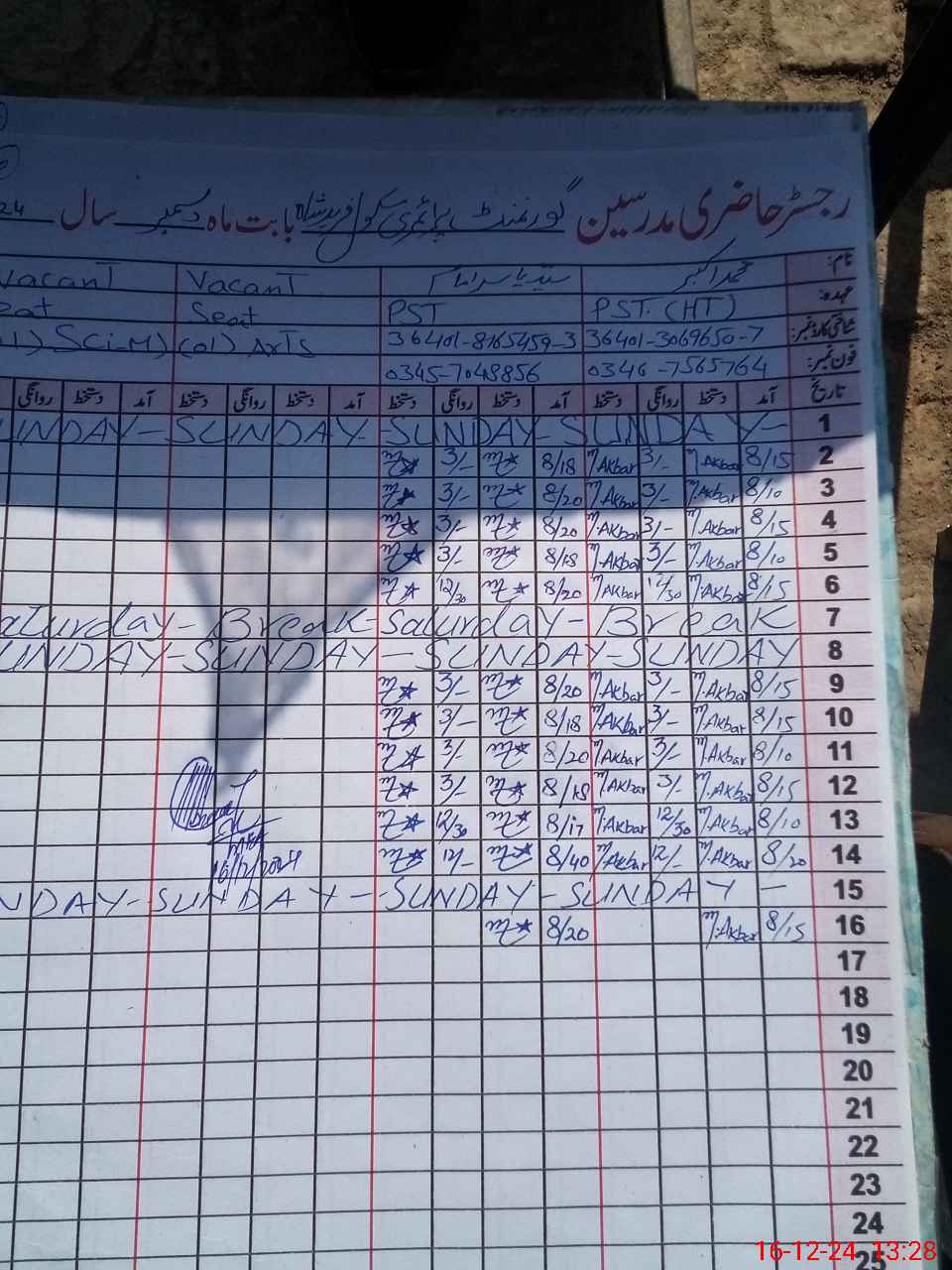 | Name: MU**** AK**** Designation: (School Headmaster's/Headmistress's) PST Phone/Cell Number: 03**** |
