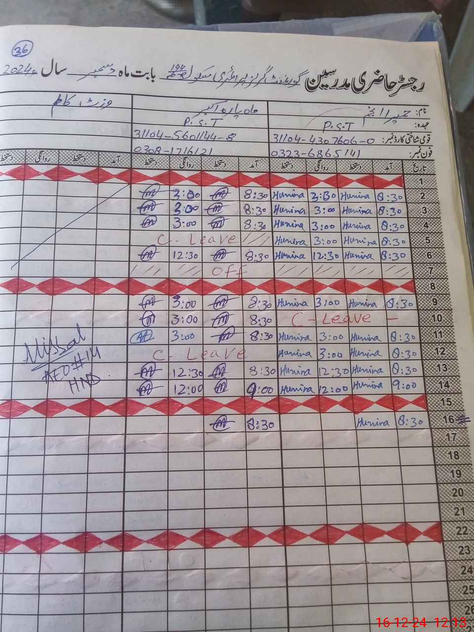 | Name: HU**** AN**** Designation: (School Headmaster's/Headmistress's) PTC Phone/Cell Number: 03**** |