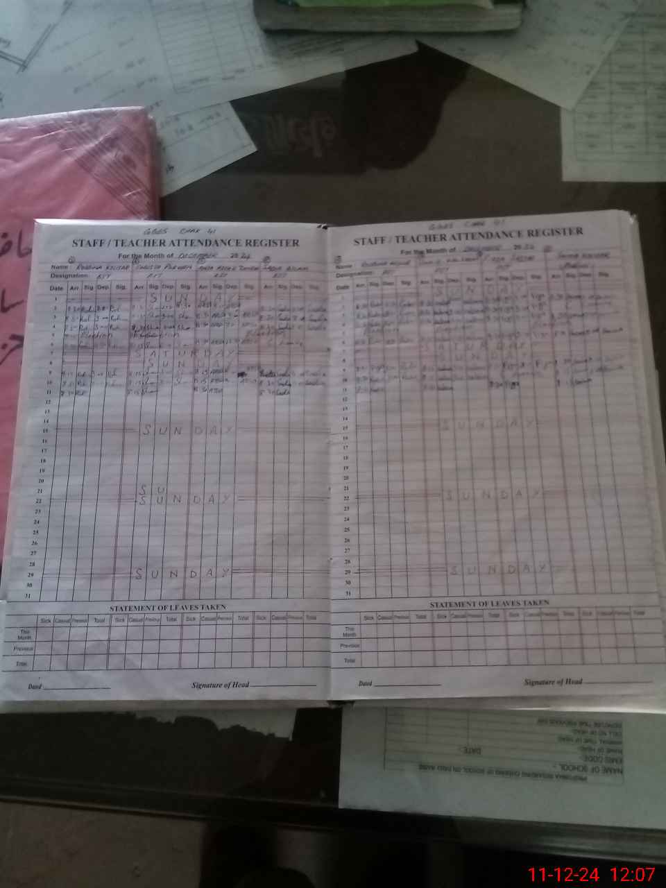 | CNIC | Full Name | Designation | R/C | Absence During Last Calender Month |