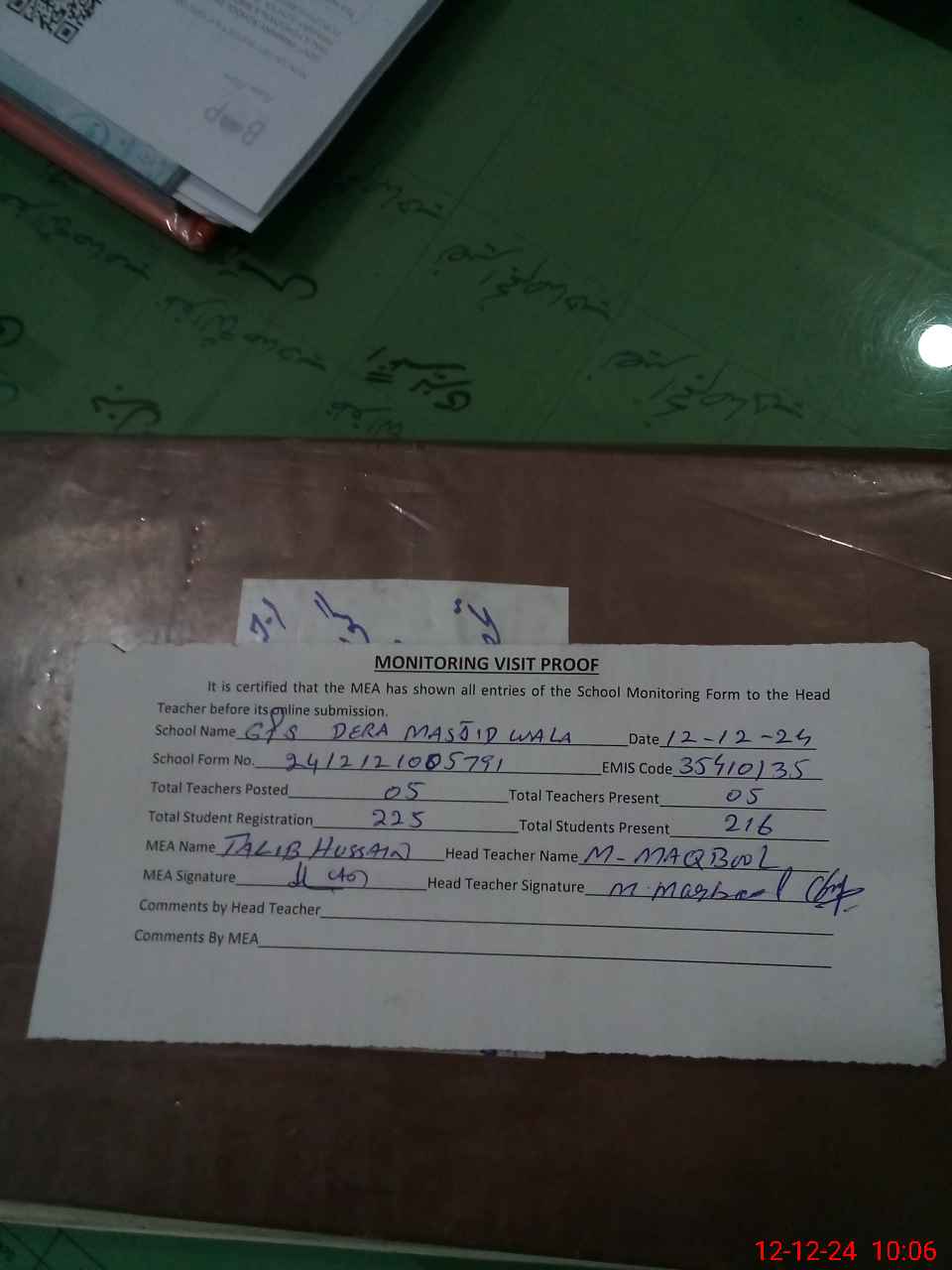 | EMIS Code: 35410135 | Name of School: GPS DERA MASJID WALA | |||