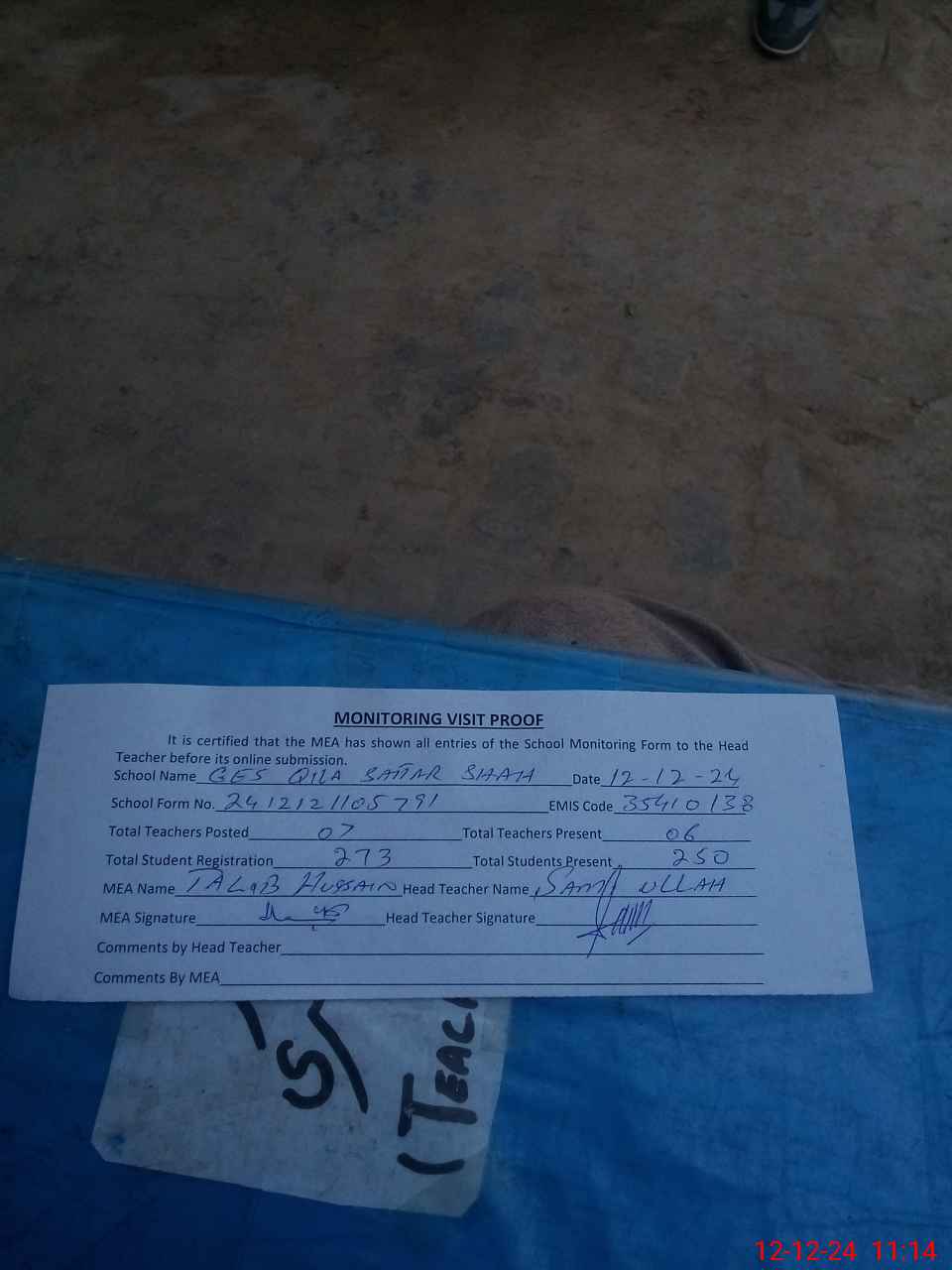 | EMIS Code: 35420138 | Name of School: GES QILA SATAR SHAH | |||