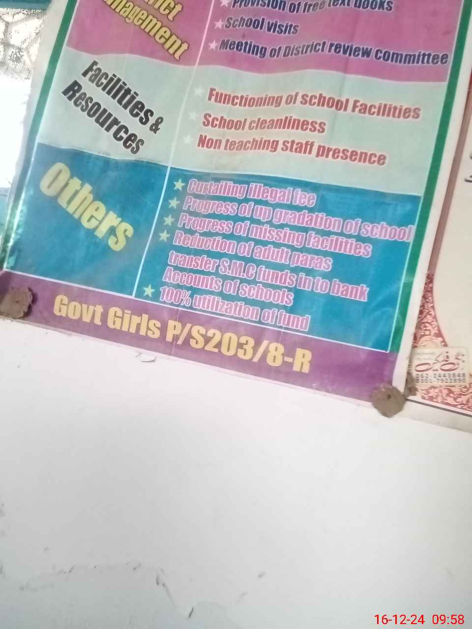 | EMIS Code: 31130273 | Name of School: GGPS CHAK NO 203/8-R | |||