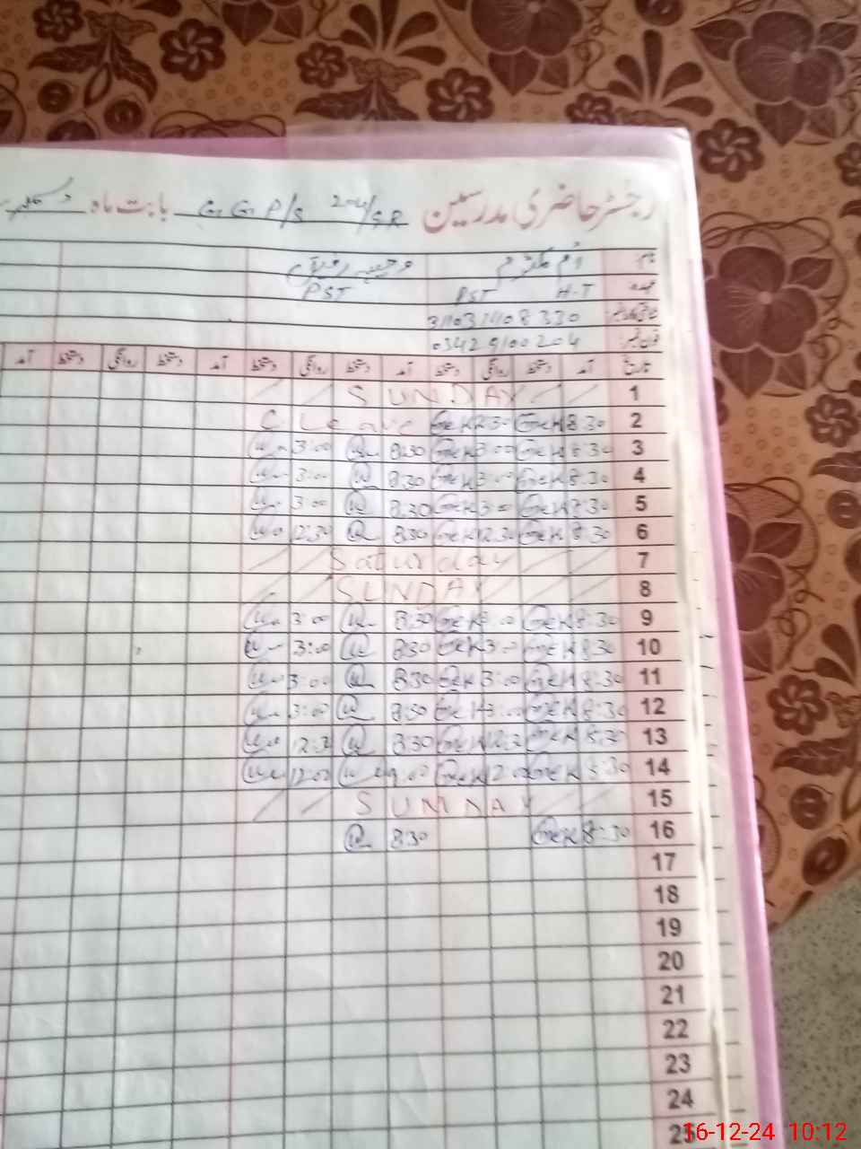 | CNIC | Full Name | Designation | R/C | Absence During Last Calender Month |