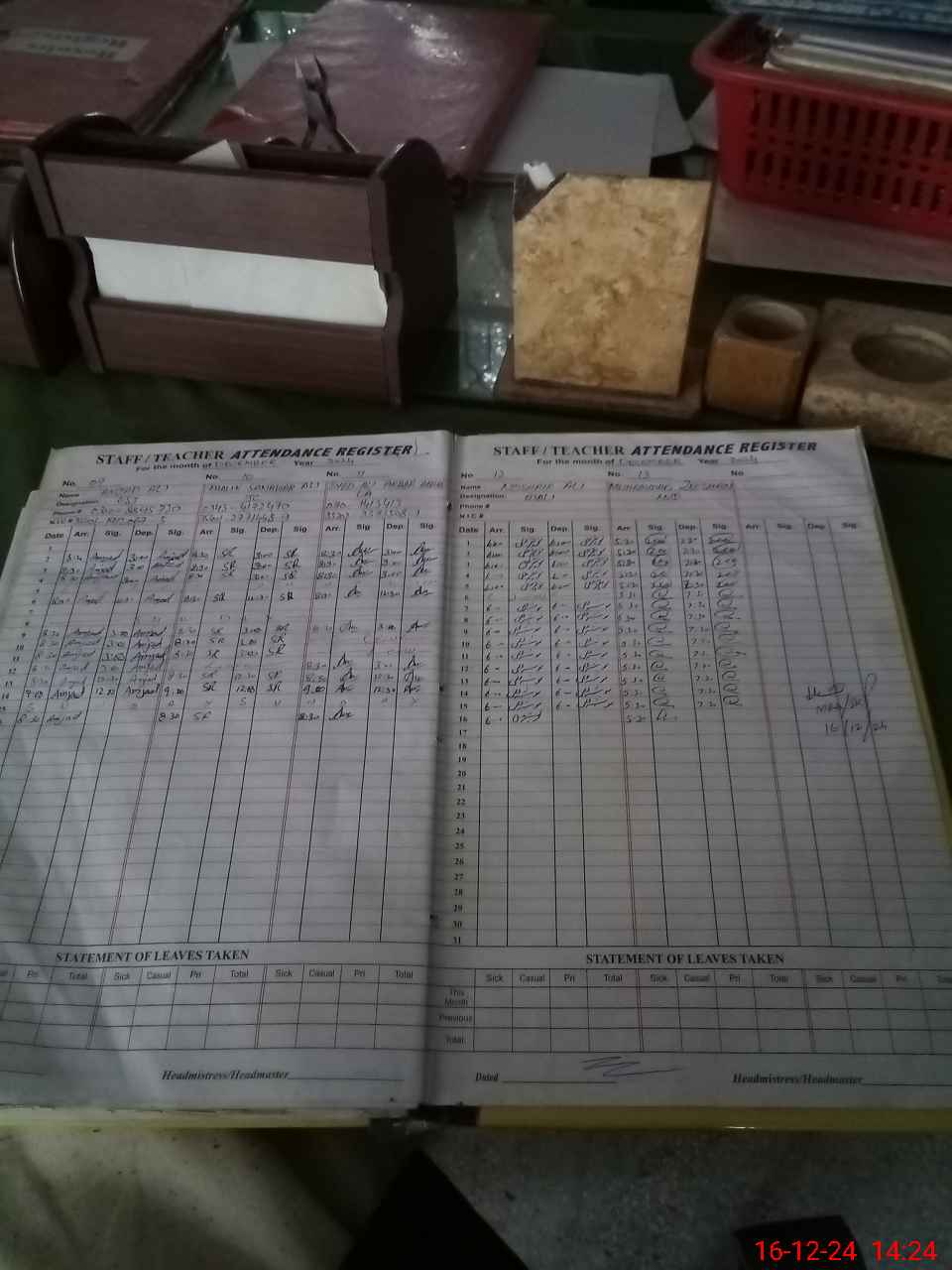 | CNIC | Full Name | Designation | R/C | Absence During Last Calender Month |