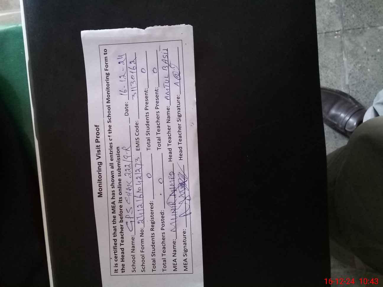 | EMIS Code: 31130162 | Name of School: GPS CHAK NO.222/9-R | |||